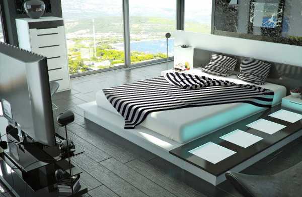 Интерьер спальни в стиле хай тек: выбираем кровать