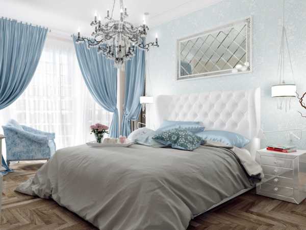 - Применение больших зеркал, расположенных на разных стенах комнаты и отражающих ее участки, зрительно сделают спальню намного больше.