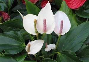 Spathiphyllum commutatum – яркий представитель рода из Юго-Восточной Азии и Полинезии, растение высотой – 60-75 см с большими белыми цветами.