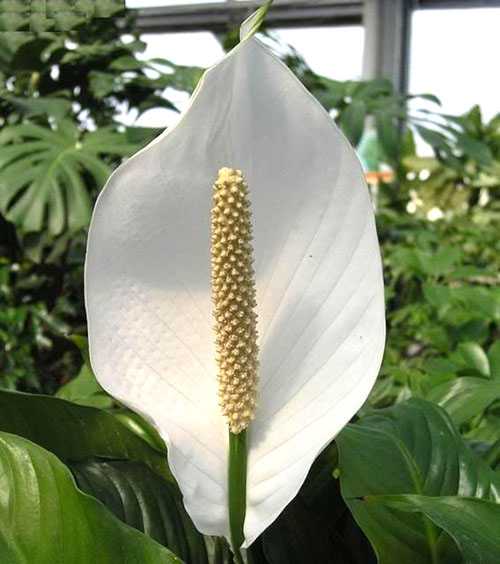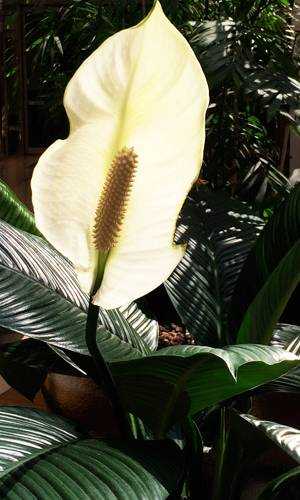 Глубокий зеленый цвет подчеркивает красоту белоснежного или кремового покрывала, окутавшего необычное соцветие спатифиллума. Двудомные цветки собраны в початок. Цветет спатифиллум с апреля до середины лета. Иногда зацветает осенью или зимой. Популярность растения объясняется простотой выращивания. Общепринятые названия спатифиллума — лилия мира, белый парус, даны спатифиллуму за красоту и прелесть его цветов. Фото спатифиллума передает сходство белого, легкого покрывала с парусом. С цветком связаны народные приметы.