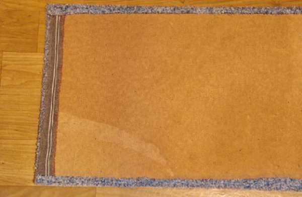 ΠΠ°ΡΠΊΠ°Ρ Π³ΠΎΡΠΎΠ². ΠΠ°ΡΠΈΠ½Π°Π΅ΠΌ ΠΎΠ±ΠΊΠ»Π΅ΠΈΠ²Π°ΡΡ Π΅Π³ΠΎ ΡΠΊΠ°Π½ΡΡ. ΠΡΡΠ΅Π·Π°Π΅ΠΌ ΠΊΡΡΠΎΠΊ ΡΠΊΠ°Π½ΠΈ, ΡΠΈΡΠΈΠ½Π° ΠΊΠΎΡΠΎΡΠΎΠ³ΠΎ ΡΠ°Π²Π½Π° Π²ΡΡΠΎΡΠ΅ Π±Π°ΡΠ΅Π½ΠΊΠΈ ΠΏΠ»ΡΡ ΡΠ°Π½ΡΠΈΠΌΠ΅ΡΡ Π½Π°Β ΠΏΡΠΈΠΏΡΡΠΊ (ΠΈΡΠΎΠ³ΠΎ 46,5Β ΡΠΌ), Π°Β Π΄Π»ΠΈΠ½Π° ΡΠ°Π²Π½Π° Π΄Π»ΠΈΠ½Π΅ ΠΏΠ΅ΡΠΈΠΌΠ΅ΡΡΠ° (34Γ4 = 136Β ΡΠΌ). ΠΠΎΒ Π΄Π»ΠΈΠ½Π΅ ΡΠΎΠΆΠ΅ ΠΌΠΎΠΆΠ½ΠΎ ΠΎΡΡΠ°Π²ΠΈΡΡ ΠΎΠΊΠΎΠ»ΠΎ ΡΠ°Π½ΡΠΈΠΌΠ΅ΡΡΠ° Π½Π°Β ΠΏΡΠΈΠΏΡΡΠΊ, ΡΡΠΎΠ±Ρ ΠΊΡΠ°Ρ Π±ΡΠ»ΠΈ Π°ΠΊΠΊΡΡΠ°ΡΠ½Π΅Π΅.