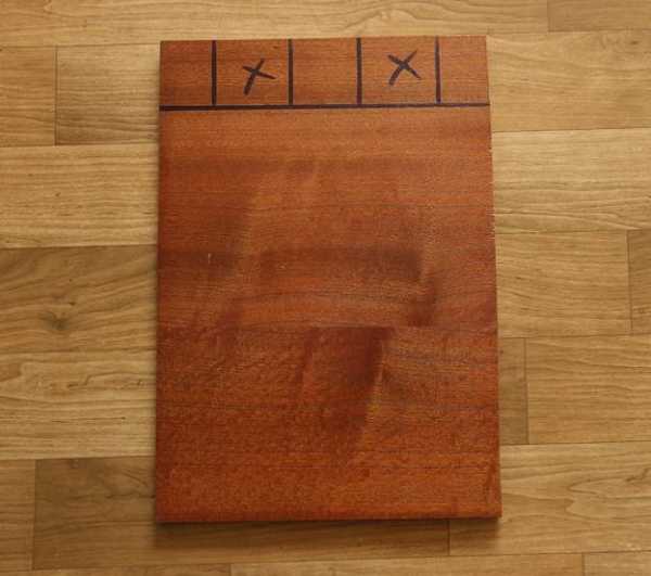 ΠΠ°Β ΡΡΠ΅Π½ΠΊΠ΅ ΡΒ ΡΠΈΡΠΈΠ½ΠΎΠΉ 34Β ΡΠΌ ΠΎΡΠΌΠ΅ΡΠ°Π΅ΠΌ ΠΏΡΡΡ ΡΠ°Π²Π½ΡΡ ΠΎΡΡΠ΅Π·ΠΊΠΎΠ² Π΄Π»ΠΈΠ½ΠΎΠΉ 6,8Β ΡΠΌ. ΠΡΠΈΠΊΠ»Π°Π΄ΡΠ²Π°Π΅ΠΌ Π»ΠΈΠ½Π΅ΠΉΠΊΡ ΠΈΒ Π΄Π΅Π»Π°Π΅ΠΌ ΠΎΡΠΌΠ΅ΡΠΊΠΈ Π½Π°Β Π΄Π΅Π»Π΅Π½ΠΈΡΡ 6,8Β ΡΠΌ, 13,6Β ΡΠΌ, 20,4Β ΡΠΌ. ΠΈΒ 27,2Β ΡΠΌ. ΠΠ»Π°Π΄Π΅ΠΌ ΡΠ²Π΅ΡΡ Ρ Π΄Π²Π΅ Π΄ΡΡΠ³ΠΈΠ΅ ΡΡΠ΅Π½ΠΊΠΈ (ΡΠΈΡΠΈΠ½ΠΎΠΉ 30,5Β ΡΠΌ), ΠΏΠΎΒ ΠΊΡΠ°ΡΠΌ ΠΏΡΠΈΠΊΠ»Π°Π΄ΡΠ²Π°Π΅ΠΌ Π±ΠΎΠΊΠΎΠ²ΡΠ΅ ΡΠ΅ΠΉΠΊΠΈ (ΡΠΈΡΠΈΠ½ΠΎΠΉ 1,5Β ΡΠΌ) ΠΈΒ Π΄Π΅Π»Π°Π΅ΠΌ ΠΊΠ°ΡΠ°Π½Π΄Π°ΡΠΎΠΌ ΠΎΡΠΌΠ΅ΡΠΊΠΈ ΠΏΠΎΒ ΡΠ΅ΠΌΒ ΠΆΠ΅ Π»ΠΈΠ½ΠΈΡΠΌ, ΡΡΠΎ ΠΈΒ ΡΒ ΠΏΠ΅ΡΠ²ΠΎΠΉ ΡΡΠ΅Π½ΠΊΠΈ. ΠΡΡΡΡΠΏΡ Π²Β 1,5Β ΡΠΌ Π½ΡΠΆΠ½Ρ, ΡΡΠΎΠ±Ρ ΠΏΠΎΡΠ»Π΅ ΡΠ±ΠΎΡΠΊΠΈ ΠΊΡΠ°ΠΉΠ½ΠΈΠ΅ Π·ΡΠ±ΡΡ Π½Π΅Β Π²ΡΠ³Π»ΡΠ΄Π΅Π»ΠΈ Π±ΠΎΠ»Π΅Π΅ ΡΠΎΠ»ΡΡΡΠΌΠΈ.