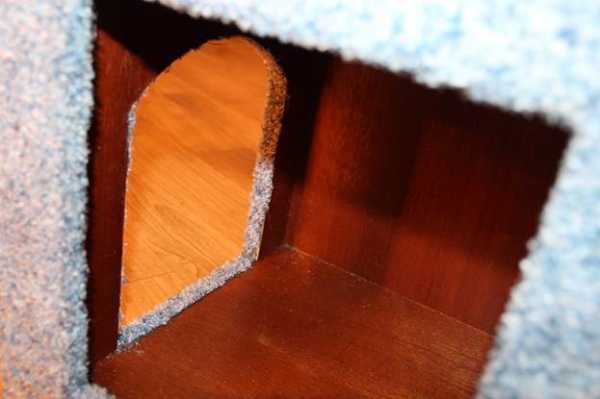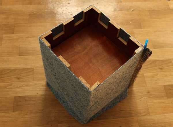 ΠΠ΅ΡΠ΅ΠΌ ΠΏΠΎΠ»ΡΡΠΈΠ²ΡΠΈΠΉΡΡ Β«ΡΠ³ΠΎΠ»ΠΎΠΊΒ» ΠΈΒ ΠΏΡΠΈΡΡΠ°Π²Π»ΡΠ΅ΠΌ ΠΊΒ Π½Π΅ΠΌΡ ΠΏΠΎΡΠ»Π΅Π΄Π½ΡΡ ΡΡΠ΅Π½ΠΊΡ, ΠΏΠΎΠ»ΡΡΠΈΠ² ΠΊΠΎΠ½ΡΡΡΡΠΊΡΠΈΡ Π²Β Π²ΠΈΠ΄Π΅ Π±ΡΠΊΠ²Ρ Β«ΠΒ». Π§ΡΠΎΠ±Ρ ΡΡΠ΅Π½ΠΊΠΈ Π½Π΅Β ΡΠ°Π·ΡΠ΅Π·ΠΆΠ°Π»ΠΈΡΡ, ΠΌΠ΅ΠΆΠ΄Ρ Π½ΠΈΠΌΠΈ ΠΊΠ»Π°Π΄Π΅ΠΌ Π±ΡΠ΄ΡΡΡΡ ΠΏΠΎΠ»ΠΎΡΠΊΡ (Π΄ΠΎΡΠΊΡ ΡΠ°Π·ΠΌΠ΅ΡΠΎΠΌ 30,5Γ30,5Β ΡΠΌ.). ΠΡΠΈΠΊΡΡΡΠΈΠ²Π°Π΅ΠΌ ΠΏΠΎΠ»ΠΊΡ ΡΠ°ΠΌΠΎΡΠ΅Π·Π°ΠΌΠΈ, ΠΏΡΠ΅Π΄Π²Π°ΡΠΈΡΠ΅Π»ΡΠ½ΠΎ ΠΏΡΠΎΡΠ²Π΅ΡΠ»ΠΈΠ² ΡΠ³Π»ΡΠ±Π»Π΅Π½ΠΈΡ.