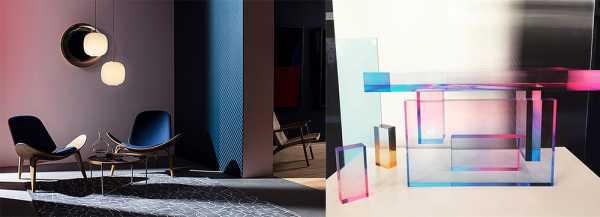 - Кстати, о градиентах. На выставке iSaloni в большей степени представлены вертикальные омбре Они повсюду – на стенах, мебели и даже светильниках. В нынешнем году это мягкие сочетания цветов, которые Вы часто встречали на фэнтезийных картинах – и в природе. Эти завораживающие переходы цветов вечернего заката – почему бы не взять их к себе домой?