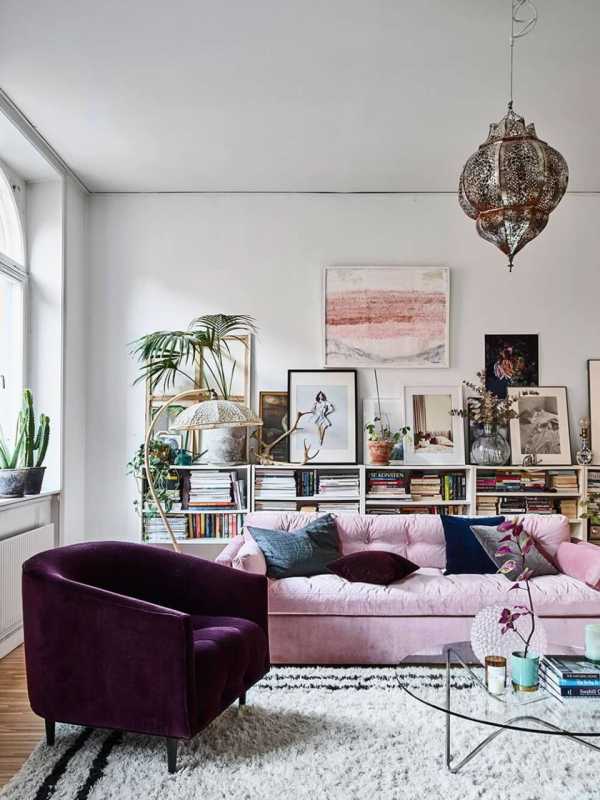 - Вот мы и плавно перешли к вышеупомянутым оттенкам розового. Вряд ли Вы встретите в новых интерьерах кричащие оттенки фуксии, если они не соответствуют избранному стилю – например, поп-арту. Розовый предстает перед нами в приглушенных оттенках, приближенных к сиреневому, а также насыщенных ягодных цветах.