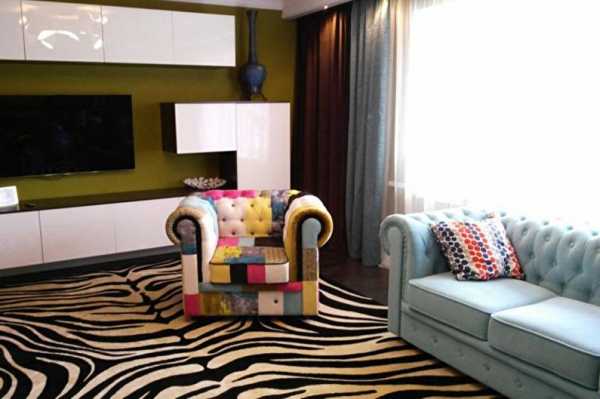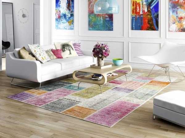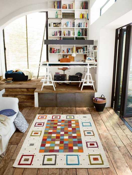 Беспроигрышный вариант для обустройства пола – палас или небольшой коврик из разноцветных фрагментов. В обоих случаях материал должен быть плотным и прочным. Сам пол должен быть нейтрального цвета, чтобы на нем не акцентировалось внимание.