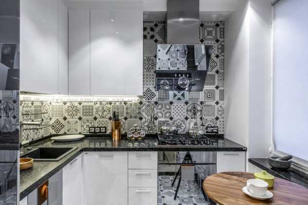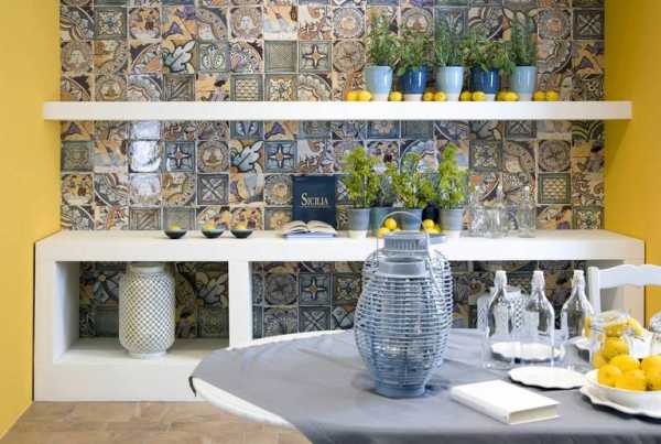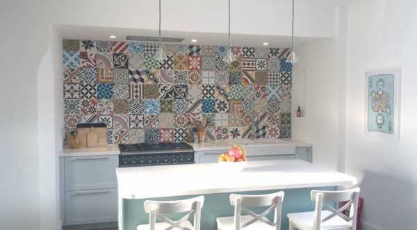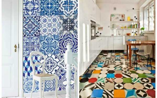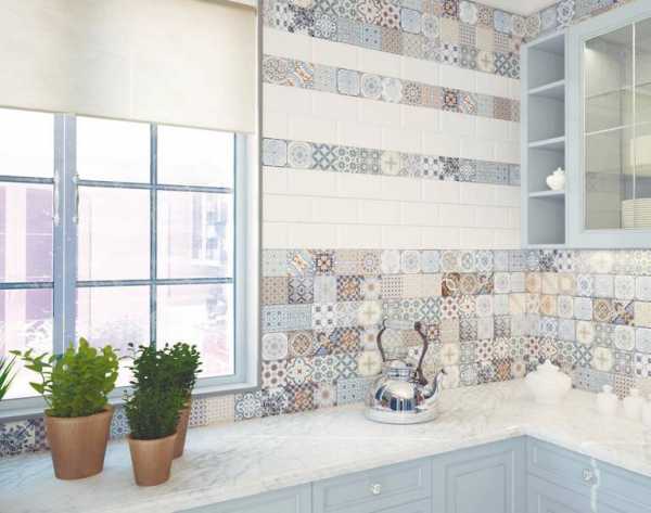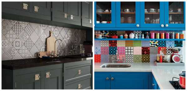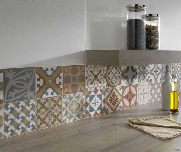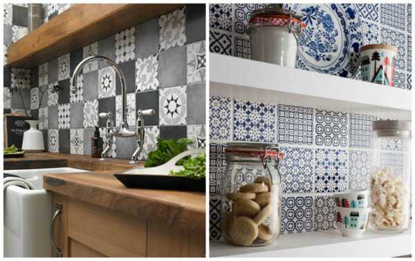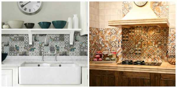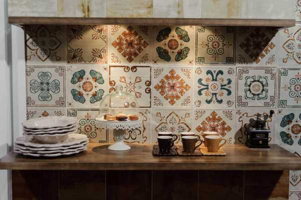 Чтобы сделать интерьер кухни или ванной комнаты более привлекательным, можно использовать плитку в стиле пэчворк или самим подобрать образцы, которые подходят друг к другу по цвету или форме. Нередко плитка остаётся после ремонта. Её можно комбинировать, создавать интересные орнаменты. Такая мозаика будет уместна на кухонном фартуке, на стене в ванной комнате, в нише. Главное, чтобы рисунок был гармоничным и полностью вписывался в интерьер.