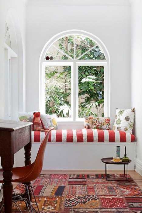 Не стоит забывать о занавесках для окон и необычном покрывале. Для декора применяются торшеры или цветочные вазоны.