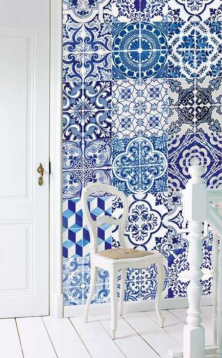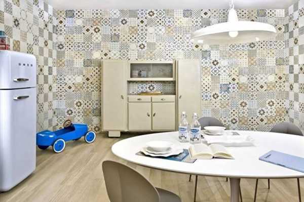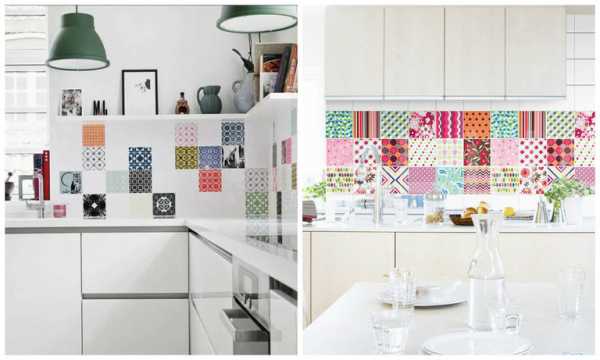 Для составления декора в тематике пэчворк подойдут не только тканевые полотна, но и обрезки обоев, разномастная керамическая плитка. Плиты используйте в коридоре, ванной или кухне. Лоскутным узором можно облицевать как целую стену, так и небольшую ее часть, например, кухонный фартук.