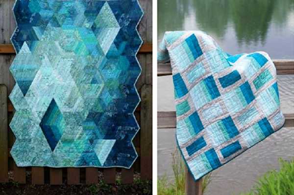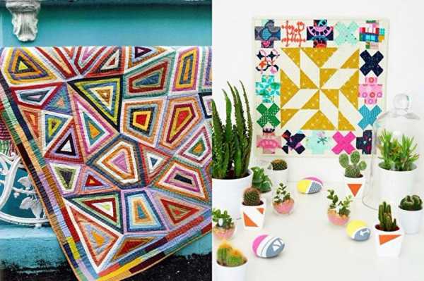 Треугольники. Наименование говорит само за себя – в отличие от других техник, в данном случае сшиваются не квадратные элементы, а треугольники. Пришивая их в различных направлениях, можно получить зигзагообразные орнаменты или фигуры в форме звезд.