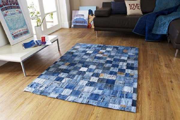 Сегодня актуально украшать интерьер не только лоскутными одеялами или подушками. Актуальны и ковры в стиле пэчворк. Мировые бренды предлагают широкий ассортимент таких изделий, но если есть желание и время, такой ковёр можно сделать своими руками. Такая вещь сделает интерьер по-настоящему уютным и привнесёт в него тепло. Для этих целей подойдёт джинсовая ткань, кусочки ковровых покрытий (которые, как и обои можно приобрести в магазине), вязанные лоскутки.