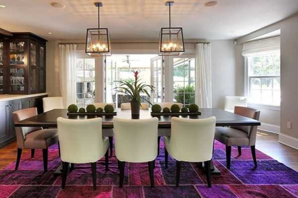 - В обеденной зоне ковер из лоскутов, повторяющий форму стола.