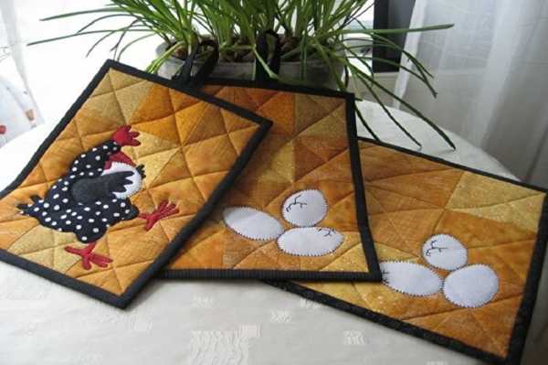 - Пэчворк идеи для кухни предполагают использование лоскутных салфеток.