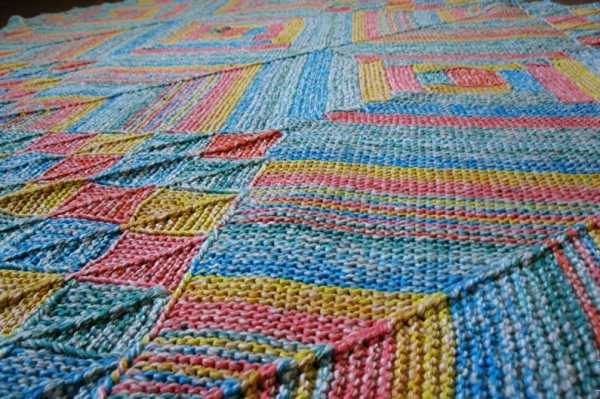 Акварель. Основной прием данной методики состоит в применении близких по цвету прямоугольных деталей. Плавная градация от темных оттенков к более светлым создает ощущение разводов акварели. Изготовленные в такой манере покрывала, коврики смотрятся невероятно нежно.