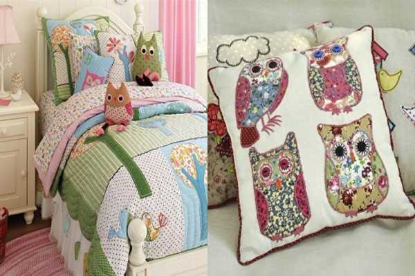 Комната для деток – еще одно место, где пестрые узоры будут очень кстати. Подушечки с животными, в частности, совами или котами, стали модным трендом в современном дизайне. Хорошая новость состоит в том, что вы сможете самостоятельно и без особого труда пошить подобные подушки, взяв выкройки из интернета. Также можно сделать аппликацию из разноцветных лоскутов.