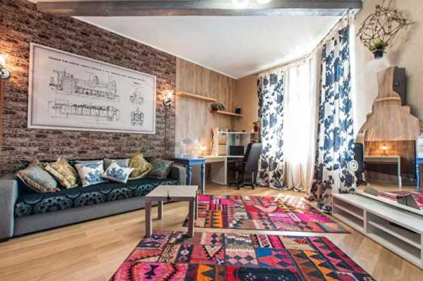Пэчворк в дизайне интерьера может удачно сочетаться с другими стилями. Рассмотрим наиболее эффектные комбинации: