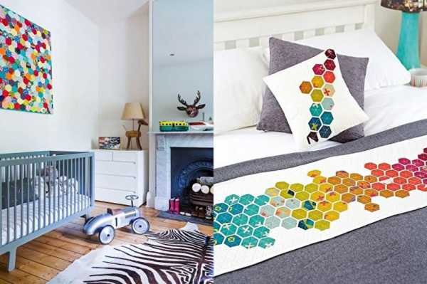 Соты. Данный метод невероятно гармоничен на поверхностях прелестных подушечек, пледов или панно в детской. Для изготовления изделий в этом стиле подготовьте разноцветные шестиугольники, намекающие на пчелиные соты.
