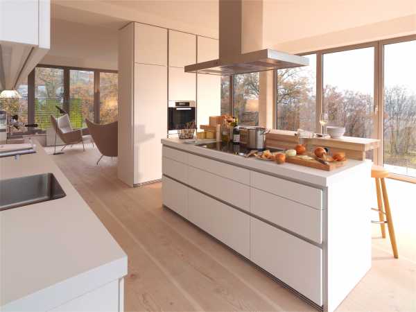 Главная особенность современной тенденции – стремление к высокой технологичности и некоему «футуризму» в оформлении интерьера. Гладкая блестящая мебель, элегантные и в то же время строгие белые цвета, округлая поверхность рабочей зоны и много вмонтированной техники, что подбирается под «тон». Для контраста можно заметить, что наряду с этой модой не менее популярными остаются эффекты под «натуральное дерево» и патина (эффект старой мебели) – любители классики будут всегда отстаивать свои позиции.