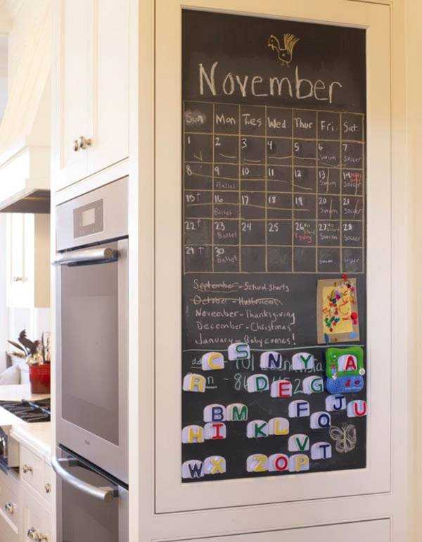 Кухонный стенд для заметок поможет вам держать под рукой новые рецепты, списки покупок или просто приятные записки друг для друга. Грифельная доска или яркий бумажный стенд, изготовленный своими руками, являются самыми популярными вариантами для воплощения этой идеи!