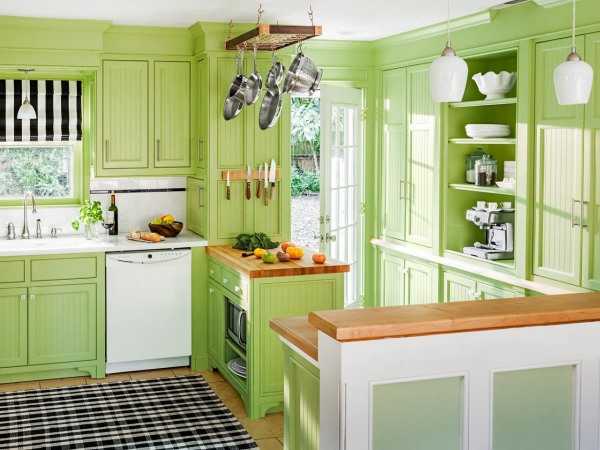 Зеленый может влиять по-разному в зависимости от количества света, насыщенности и оттенка. В основном это цвет гармонии и спокойствия, который хорошо подходит в сочетании с деревянными классическими кухнями. А вот синий цвет на кухне понижает аппетит, успокаивает, делает помещение «более холодным».