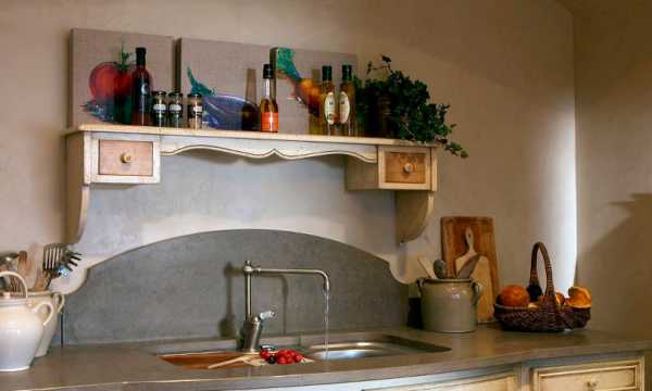 Раковины могут быть выполнены как из металла, так и из камня. Если столешница выполнена из камня или из его искусственного аналога, то можно врезать в нее такого же плана раковину, которая будет идеально вписываться в рабочую зону. Варианты раковин под металл должны напоминать литой чугун, тогда задумка создать истинно прованский стиль на кухне воплотится в реальность.