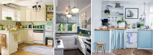 Совет! Выбирая стиль Прованс для кухни в малогабаритной квартире, нужно уделить особое внимание выбору цветовой гаммы. Максимально светлая отделка потолка и стен позволит зрительно расширить пространство. Кухонный гарнитур лучше выбрать светлых тонов: голубого, фисташкового, оливкового, бирюзового, мятного, бежевого цвета. Очень стильно смотрятся гарнитуры цвета ванили или лаванды. Если фасады светлых тонов не подходят, то стоит остановиться на светлой или белой столешнице и фартуке.
