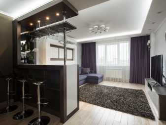 В наше время большинство квартир представляют собой типовой проект, из-за чего выглядят похожими друг на друга, как две капли воды. Современный подход требует индивидуальности. Стандартный ремонт квартиры имеет право на существование, однако нередко такое жилище безликое. Те хозяева, кто обладает эстетическим вкусом и хочет отойти от приевшихся стандартов, используют самые неожиданные дизайнерские приемы, чтобы разнообразить интерьер. Барная стойка в гостиной является популярным, свежим методом превращения квартиры в уютный и функциональный уголок с претензией на особый стиль.