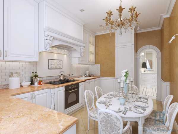 Белый ламинированный стол на кухне в стиле «прованс»