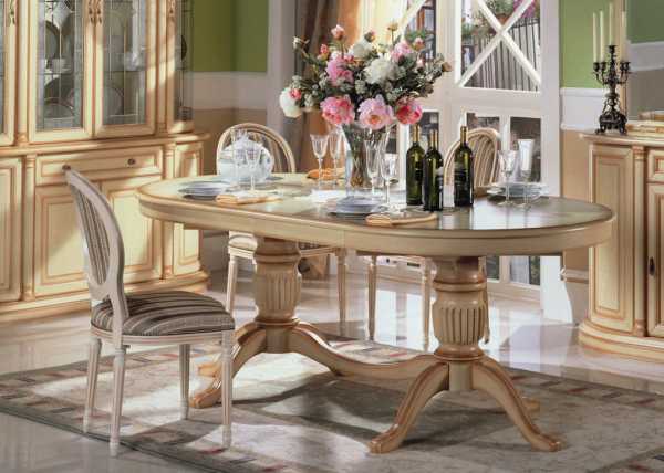 Раздвижной овальный стол из дерева в классическом интерьере