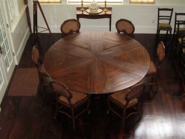 Если стол чересчур большой, то будет сложно достать до средины и взять общее блюдо. Однако, это проблема решается при помощи специального вращающегося круга посередине.