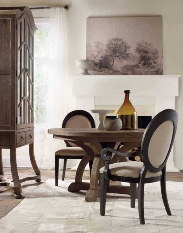 А вот большой круглый стол привнесет в дизайн комнаты нотки торжественности и элегантности.