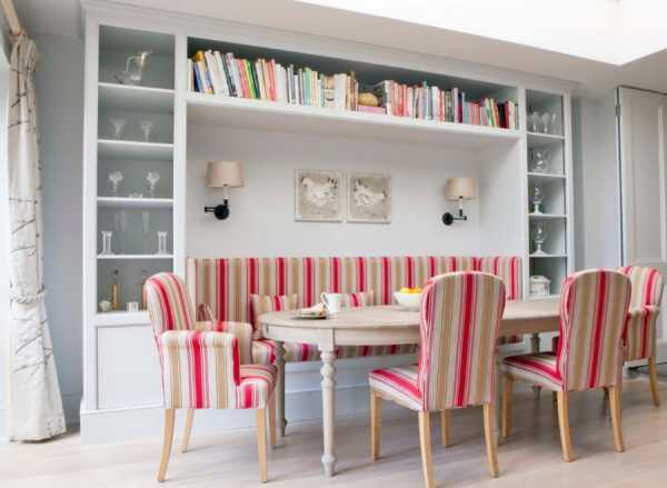 Обеденный стол с полками для вещей и мягкий уголок на кухне