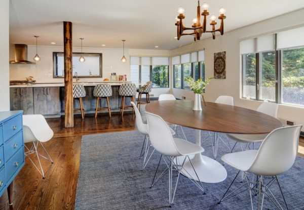 Овальный стол в интерьере скандинавской кухни