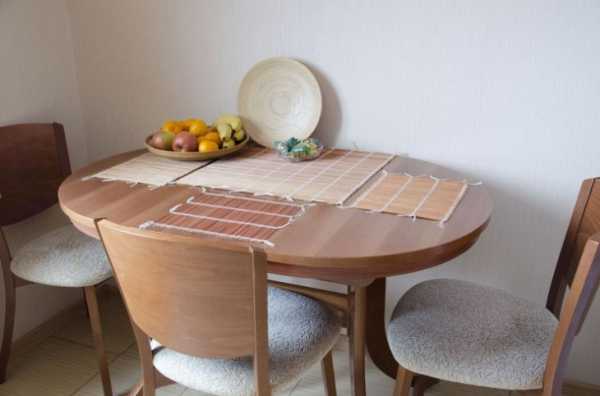 Если же вы приобретаете стол раздвижной — обязательно накройте ее скатертью, так вы придадите домашнего уюта вашей кухне и скроете линию разъединения стола.