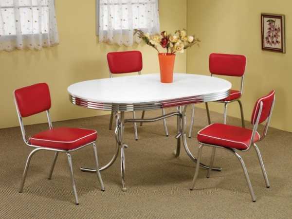 Наконец, самые современные и наиболее распространенные материалы: высококачественный ЛДСП с покрытием из пластика или МДФ (обычный, шпонированный или ламинированный). Широкий ассортимент покрытий, стилизованных под натуральные материалы – камень, дерево и металл, отличная жесткость каркаса, прочная столешница и универсальные возможности – вот далеко не полный перечень достоинств износостойких овальных столов со столешницей, устойчивой к царапинам, и хромированными металлическими ножками.