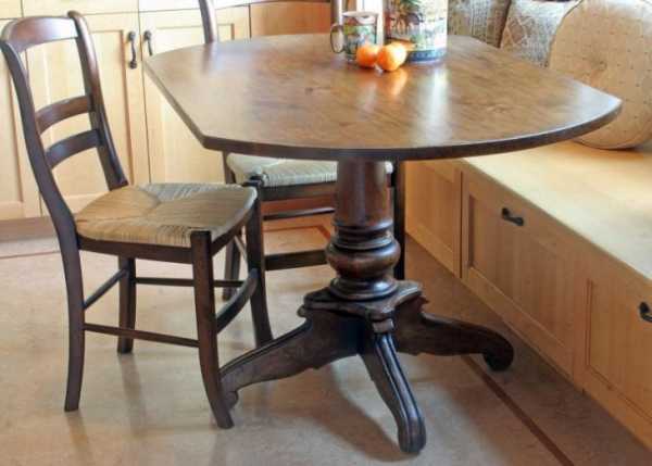 Круглый стол на кухню на одной ножке не такой устойчивый, чем обычный на четырех опорах.