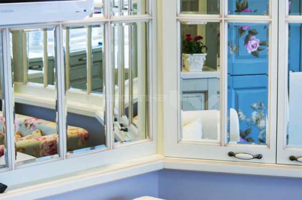 Оформление кухни в стиле прованс начали с перепланировки. Она носила концептуальный характер: часть стен теперь выполняет роль легкого садового павильона, а часть — старинного буфета. Три окна в эркере обеспечивают достаточное освещение и создают ощущение пребывания на свежем воздухе.