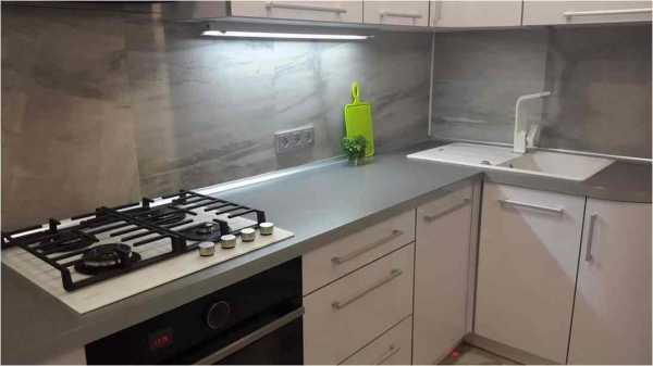 Если у вас маленькая кухня, то лучшим решением будет столешница с глянцевой поверхностью