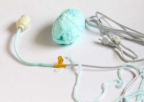 - Для полного хэнд-мэйда не хватает только украсить провод – просто обмотайте его нитками мулине или вязальными, скрепляя иногда клеем.