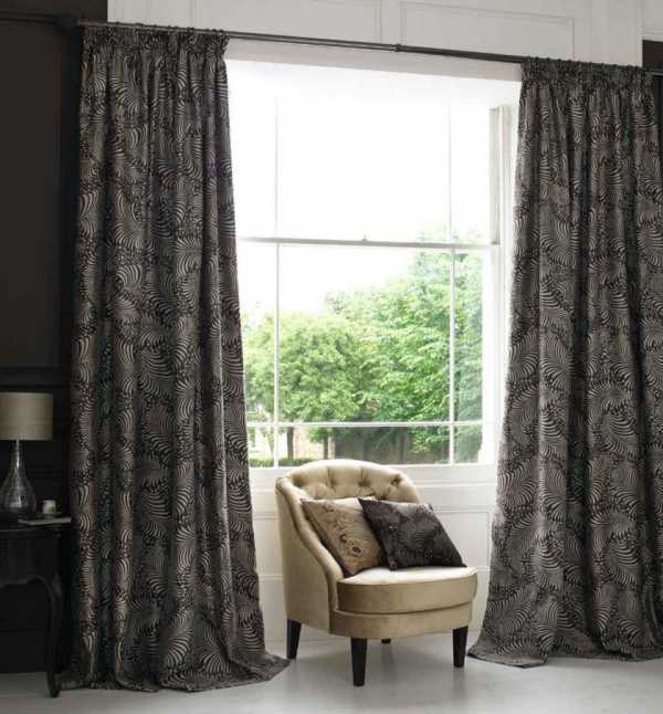 Темные шторы для гостиной — текстиль в интерьере (с фото)