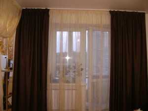 - Темные шторы коричневого оттенка делают помещение зрительно меньше, а потому в маленькой гостиной такие шторы также не вариант, особенно если они из плотной ткани.