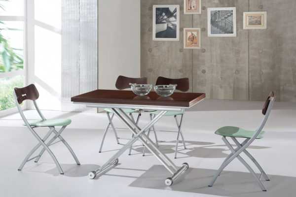 Площадь жилища не всегда позволяет выделить под каждую функциональную зону отдельное помещение. Для таких квартир подойдут модели, которые легко изменяют размеры столешницы, высоту, превращаются в другие предметы мебели. Для приема гостей понадобится большой стол, который в обычные дни будет занимать минимум места.