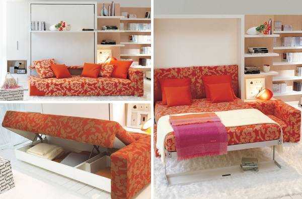 Но всё же, можно ничего не придумывать, а приобрести для малогабаритной квартиры обыкновенный диван раскладного вида, ведь по цене он значительно доступнее в сравнении с трансформером.