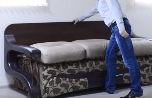 Для этого тебе потребуется всего лишь опустить вниз подушки, а затем потянуть на себя деревянную спинку.