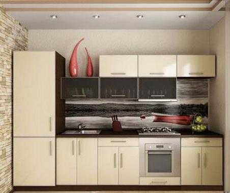 Бежево-коричневые фасады из МДФ прекрасно смотрятся на маленькой кухне