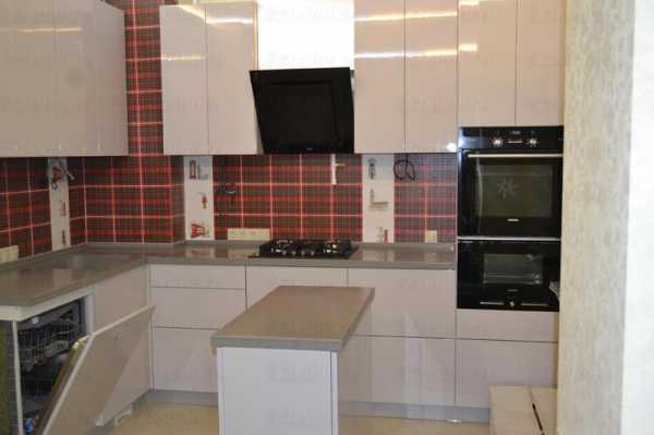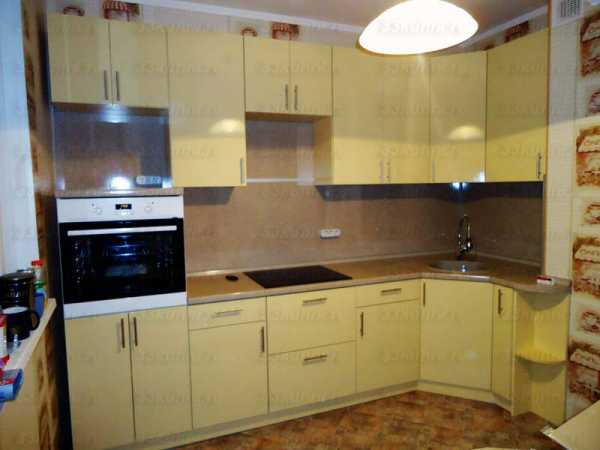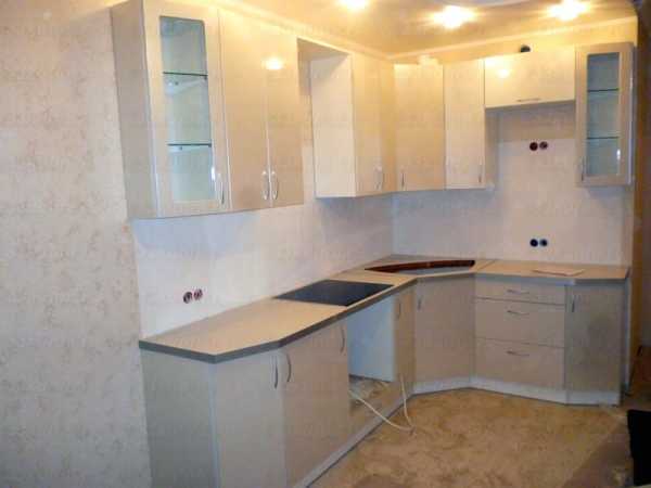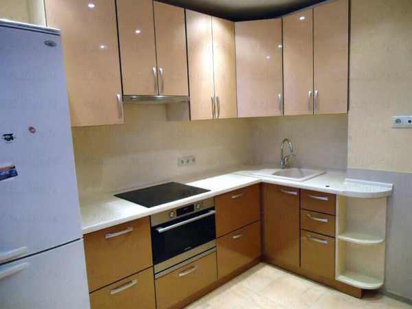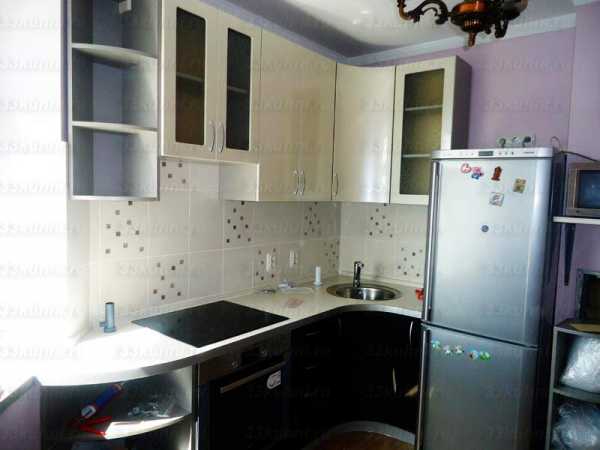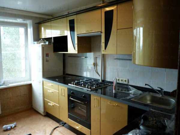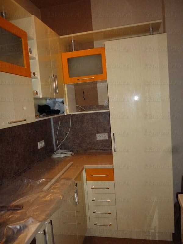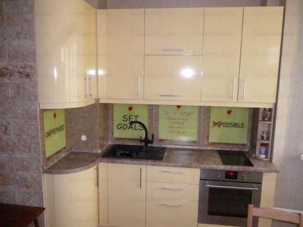 Угловая кухня в хрущевке 5 кв.м с глянцевыми фасадами