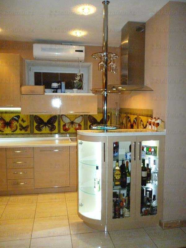 Очень качественная кухня сделанная по эскизу заказчика, в которой всё предусмотрено и сделано с максимальным удобством. Выдвижные ящики избавят вас от нужды вставать на корточки и рыться в глубине шкафа, на подвесных шкафах используется специальная качественная фурнитура, делающая открывания двери легкими и плавными. Основной цвет мебели выбран очень удачно, цвет который будет выравнивать ваше эмоциональное состояние, остальные яркие краски используемые в интерьере кухни будут уравновешены цветом кухонного гарнитура. Наверняка подобная кухня может стать центром вашего дома, тем местом где любят собираться все домочадцы и проводить свое время за вечерней беседой или любой другой домашней посиделке.