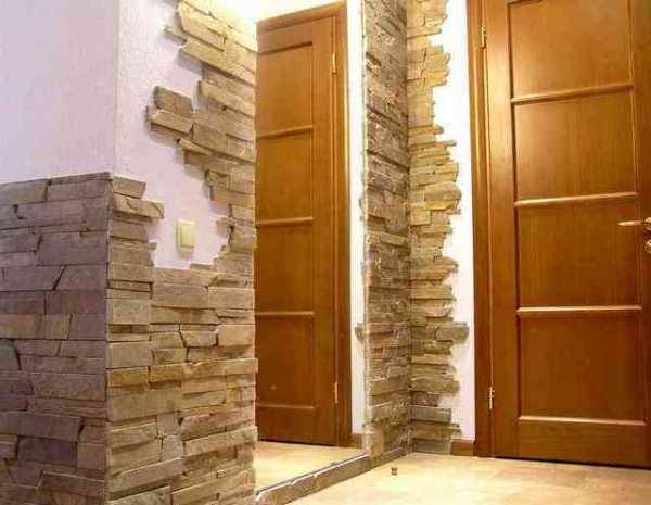 В зависимости от того, что именно больше нравится покупателю/заказчику, могут использоваться различные варианты декорирования внутреннего пространства прихожей и других помещений камнем: