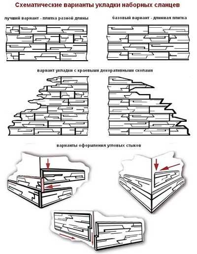 Камни разного размера следует укладывать, соблюдая очередность больших, средних и маленьких плиток. В каждом ряду очередность следует менять. При укладке декоративных камней одного размера, часть первого фрагмента второго ряда следует отпилить при помощи ножовки, чтобы соблюсти несовпадение рядов.