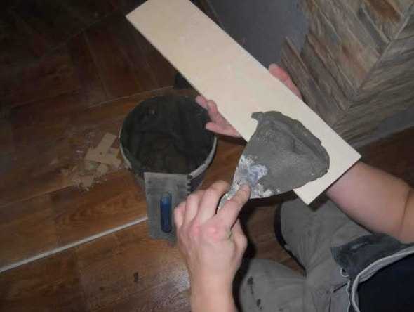 Если используется цементный клей, вместо грунтования поверхность следует обработать водой. Поверхность камня тоже нуждается в грунтовке. Она уменьшит впитываемость камня и уберет пыль. Грунтовка должна просохнуть в течение часа.